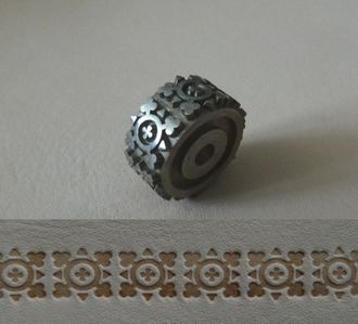 Ролик для тиснения NR-461600 руб. В корзинуРолик для тиснения кожи и картонаПрименяется для горячего и холодного тисненияУказана стоимость за один ролик, без держателяДиаметр 18 ммШирина орнамента 9 мм