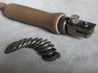 Пяточное колесико применяется для накатывания декоративной линии вокруг кожаного наборного каблука, преимущественно у мужской обуви.
